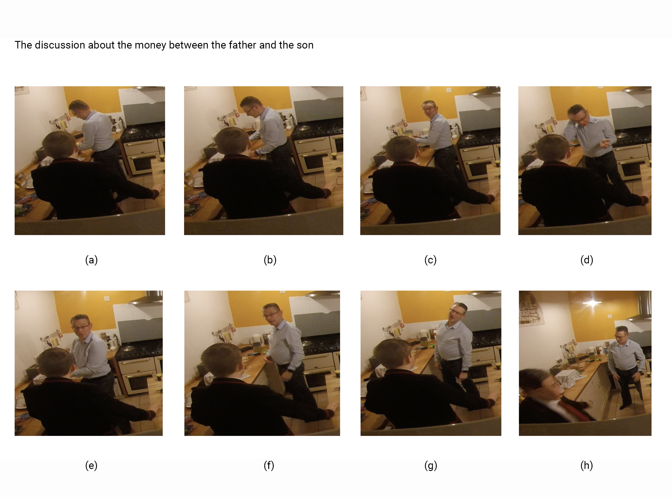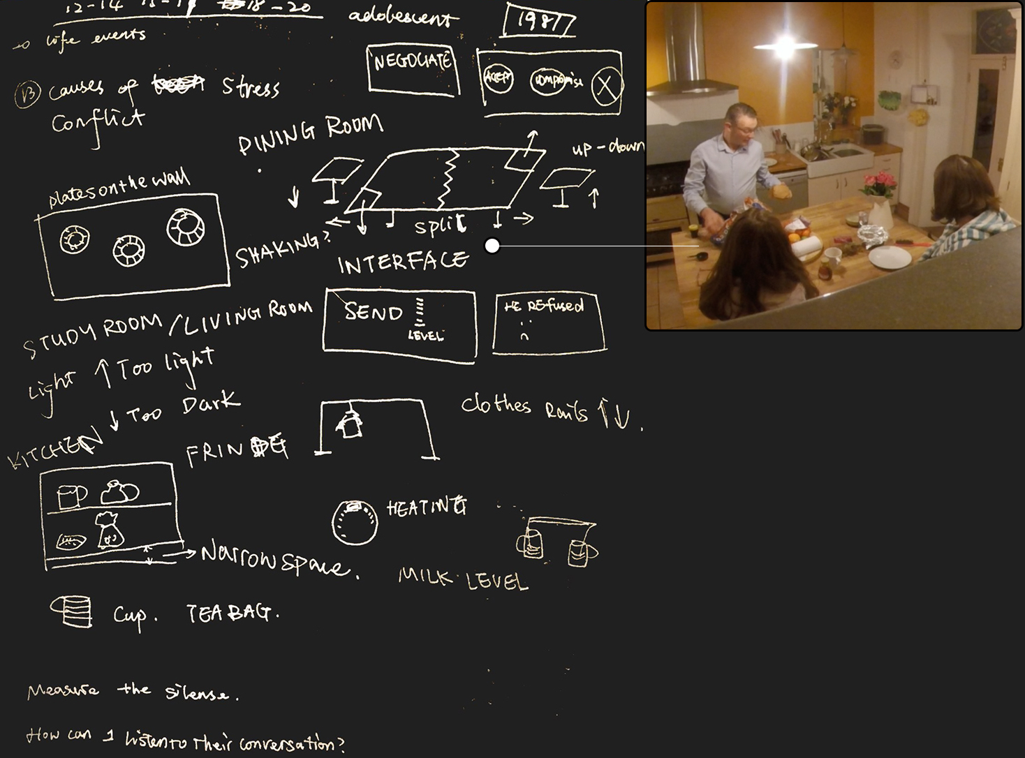 Empathise by observing family communication pattern. The subjects are a family with four members, parents, a son and a daughter that was observed with a camera set up in the kitchen for two days. From the observations, the researcher summarised several typical behaviours that potentially lead to family conflicts.