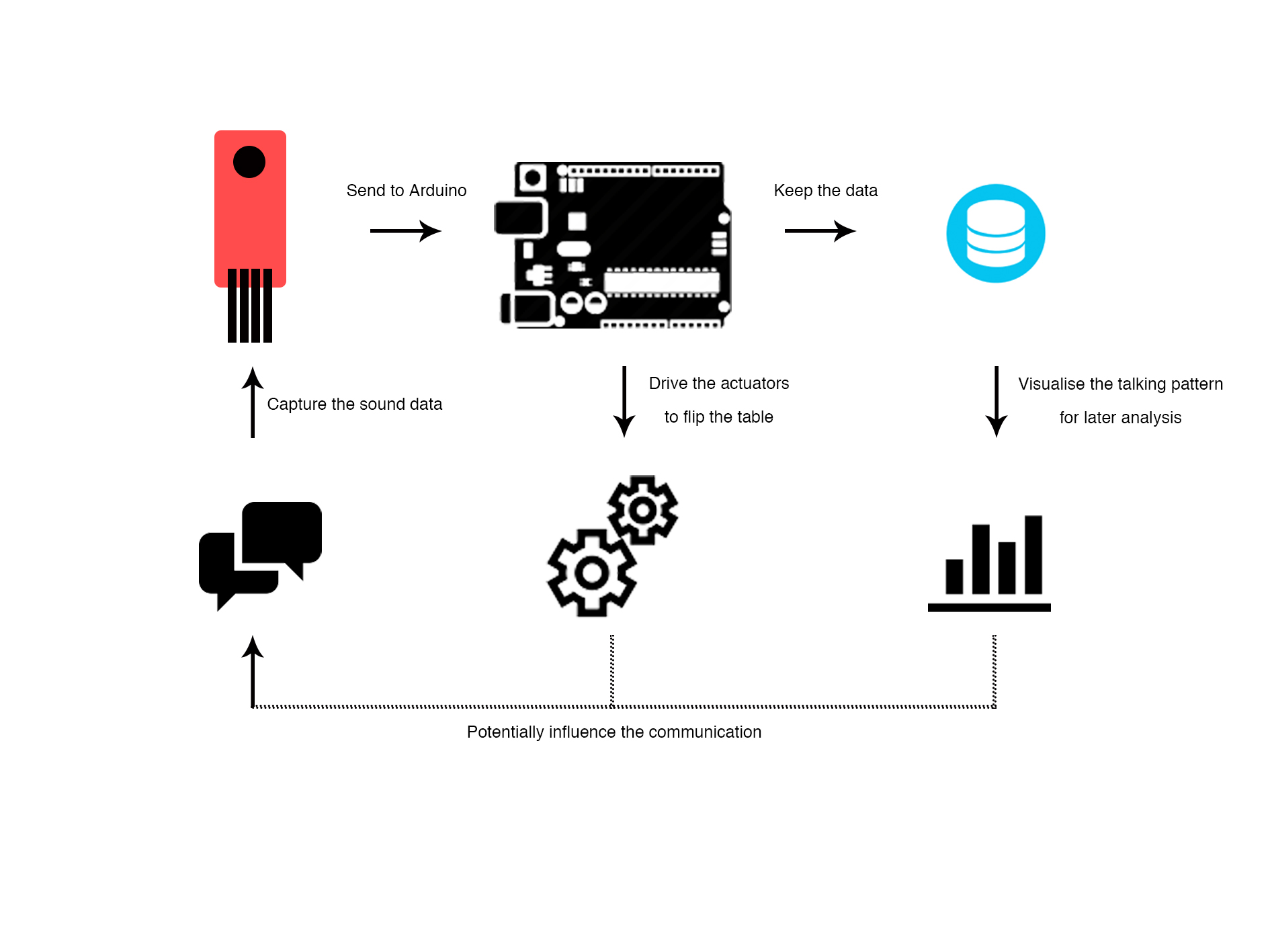 Affective computing makes the project possible to read humans' emotions and therefore identify the dominance in a conversation. Driven by Arduino and its components, the table top flips slightly when it detects the imbalance.