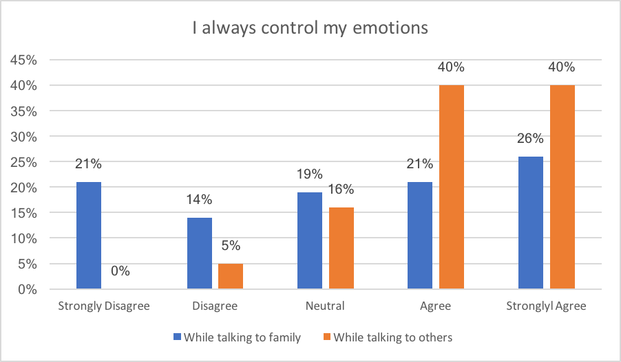 An interview about emotion regulation was carried out. The result shows that interviewees do not care so much about their emotions while talking to their family although most of them do while talking to other people. In a close relation, people tend to be more relaxed however the negative effects caused by the recklessness cannot be ignored.
