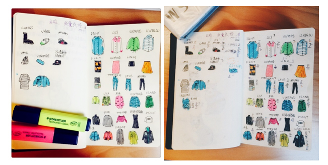 To identify whether keeping a list of all items in the wardrobe can affect shopping decisions, a paper prototype test had been done with a subject. The subject noted down all the clothes and kept a daily recording on which pieces were used.